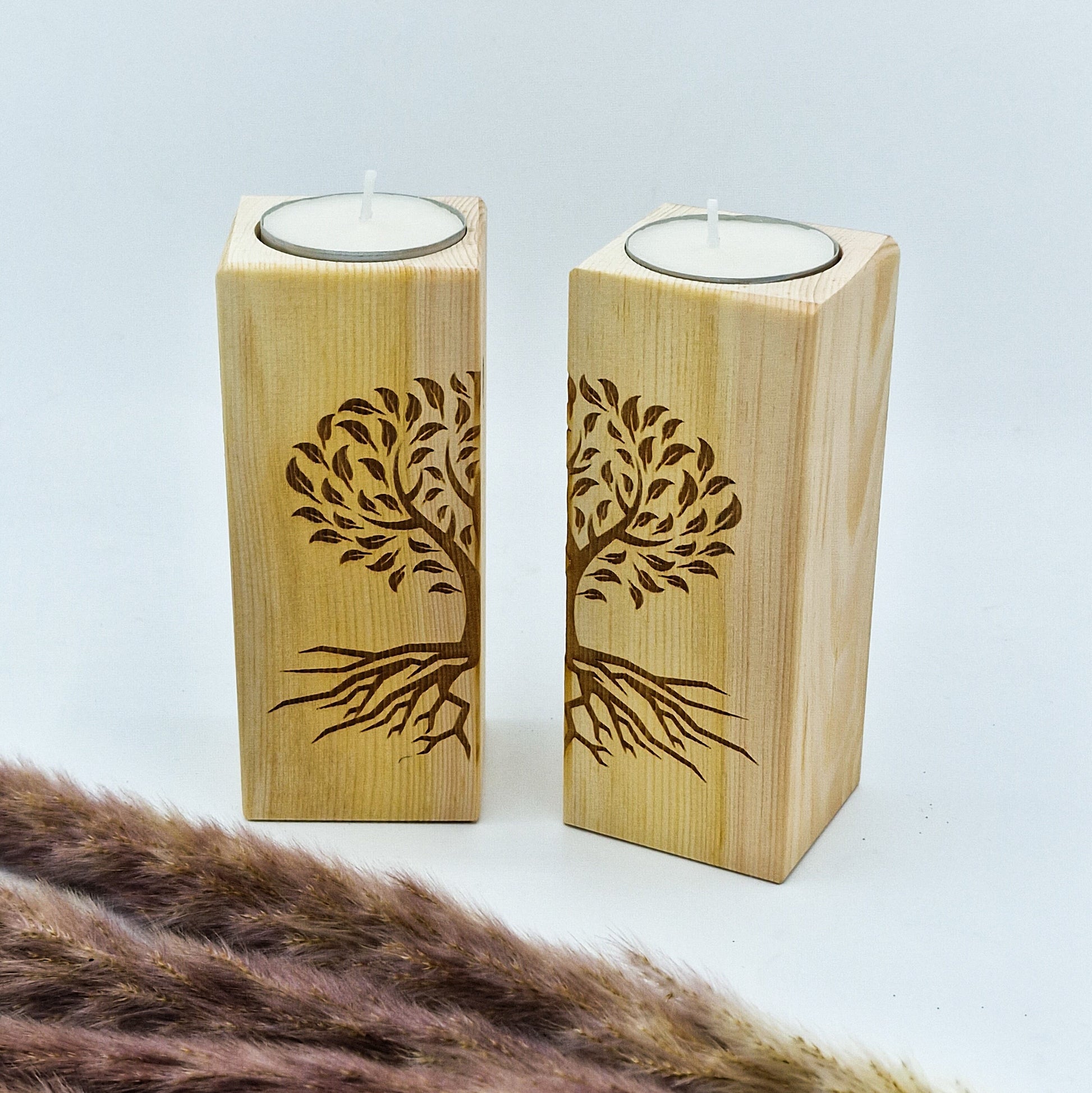 Zirbendeko Zirbensäulen Teelichthalter Kerzenhalter aus Holz Lebensbaum